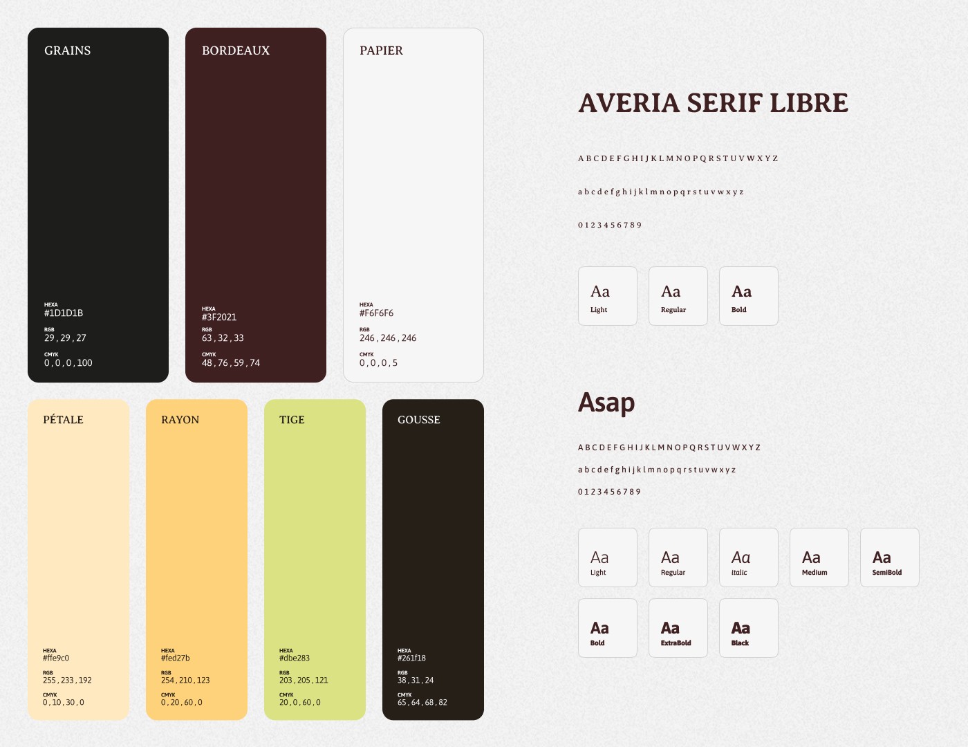 logos et déclinaisons (JPEG, PNG, PDF, SVG), typographies, éléments graphiques, charte graphique, arborescence, maquettes responsive, présentation Figma, rendu PDF, et Kit UI